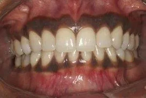 Among other effects a smoker is well aware that nicotine can increase melanin production and cause your gums and lips to darken to an unpleasant colour. Mild colour changes may include a bluish purple discolouration starting on the gums and lips which slowly turns into a deeper chocolate brown. Fortunately now we have a very easy solution for gum lightening called laser pigmentation – a simple and easy way of erasing the discolored pigments from your gums and bringing back the pink healthy appearance despite the habit. Of course the condition recurs if the smoking continues.